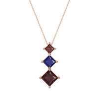 This Ruby and Blue Sapphire Necklace is casted in 14K Rose Gold. This Women’s Classic necklace features exceptionally fine gemstones, on par with those found in the world's most exclusive boutiques and among the top 10% available globally. Striking Vertical Pendant Featuring Three Princess Square-cut Stones Graduating in Size. A Modern And Geometric Design That Adds A Touch Of Contemporary Elegance. This necklace comes with a complimentary 18-inch chain. Enjoy the confidence of our 30-day, stress-free return policy—with return shipping fully covered. Each piece is also accompanied by a Lifetime Warranty, ensuring lasting beauty and peace of mind.