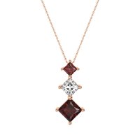 This Ruby and Diamond Necklace is casted in 14K Rose Gold. This Women’s Classic necklace features exceptionally fine gemstones, on par with those found in the world's most exclusive boutiques and among the top 10% available globally. Striking Vertical Pendant Featuring Three Princess Square-cut Stones Graduating in Size. A Modern And Geometric Design That Adds A Touch Of Contemporary Elegance. This necklace comes with a complimentary 18-inch chain. Enjoy the confidence of our 30-day, stress-free return policy—with return shipping fully covered. Each piece is also accompanied by a Lifetime Warranty, ensuring lasting beauty and peace of mind.