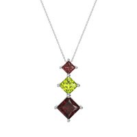 This Ruby and Peridot Necklace is casted in 14k White Gold. This Women’s Classic necklace features exceptionally fine gemstones, on par with those found in the world's most exclusive boutiques and among the top 10% available globally. Striking Vertical Pendant Featuring Three Princess Square-cut Stones Graduating in Size. A Modern And Geometric Design That Adds A Touch Of Contemporary Elegance. This necklace comes with a complimentary 18-inch chain. Enjoy the confidence of our 30-day, stress-free return policy—with return shipping fully covered. Each piece is also accompanied by a Lifetime Warranty, ensuring lasting beauty and peace of mind.
