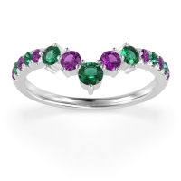 This Amethyst wedding ring is casted in 18k White Gold and set with fine quality Amethyst and Emerald. All of the gemstones we use are of the top 10% available, those found in fine quality boutiques across the world. This Amethyst wedding band can also be added to your collection of minimalist Amethyst rings. This Chevron Ring Showcases A Graceful Cascade Of Graduated Gemstones Down The Shank. Free shipping, returns, resizing, and a lifetime warranty ensure you love your purchase.