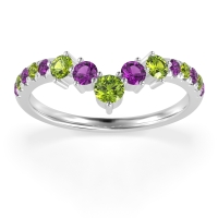 This Amethyst wedding ring is casted in Platinum and set with fine quality Amethyst and Peridot. All of the gemstones we use are of the top 10% available, those found in fine quality boutiques across the world. This Amethyst wedding band can also be added to your collection of minimalist Amethyst rings. This Chevron Ring Showcases A Graceful Cascade Of Graduated Gemstones Down The Shank. Free shipping, returns, resizing, and a lifetime warranty ensure you love your purchase.