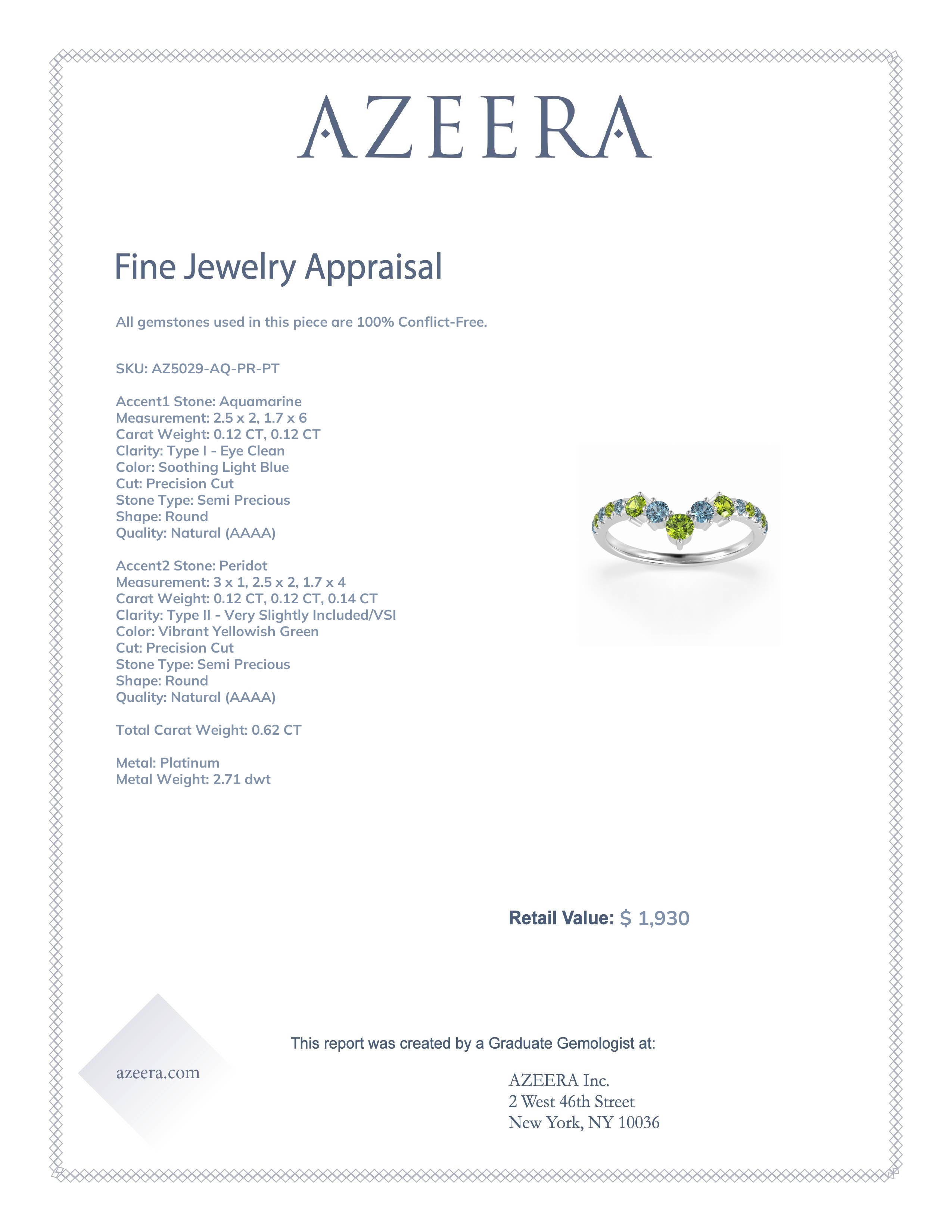 This Aquamarine wedding ring is casted in Platinum and set with fine quality Aquamarine and Peridot. All of the gemstones we use are of the top 10% available, those found in fine quality boutiques across the world. This Aquamarine wedding band can also be added to your collection of minimalist Aquamarine rings. This Chevron Ring Showcases A Graceful Cascade Of Graduated Gemstones Down The Shank. Free shipping, returns, resizing, and a lifetime warranty ensure you love your purchase.