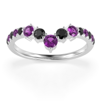 This Black Onyx wedding ring is casted in 18k White Gold and set with fine quality Black Onyx and Amethyst. All of the gemstones we use are of the top 10% available, those found in fine quality boutiques across the world. This Black Onyx wedding band can also be added to your collection of minimalist Black Onyx rings. This Chevron Ring Showcases A Graceful Cascade Of Graduated Gemstones Down The Shank. Free shipping, returns, resizing, and a lifetime warranty ensure you love your purchase.
