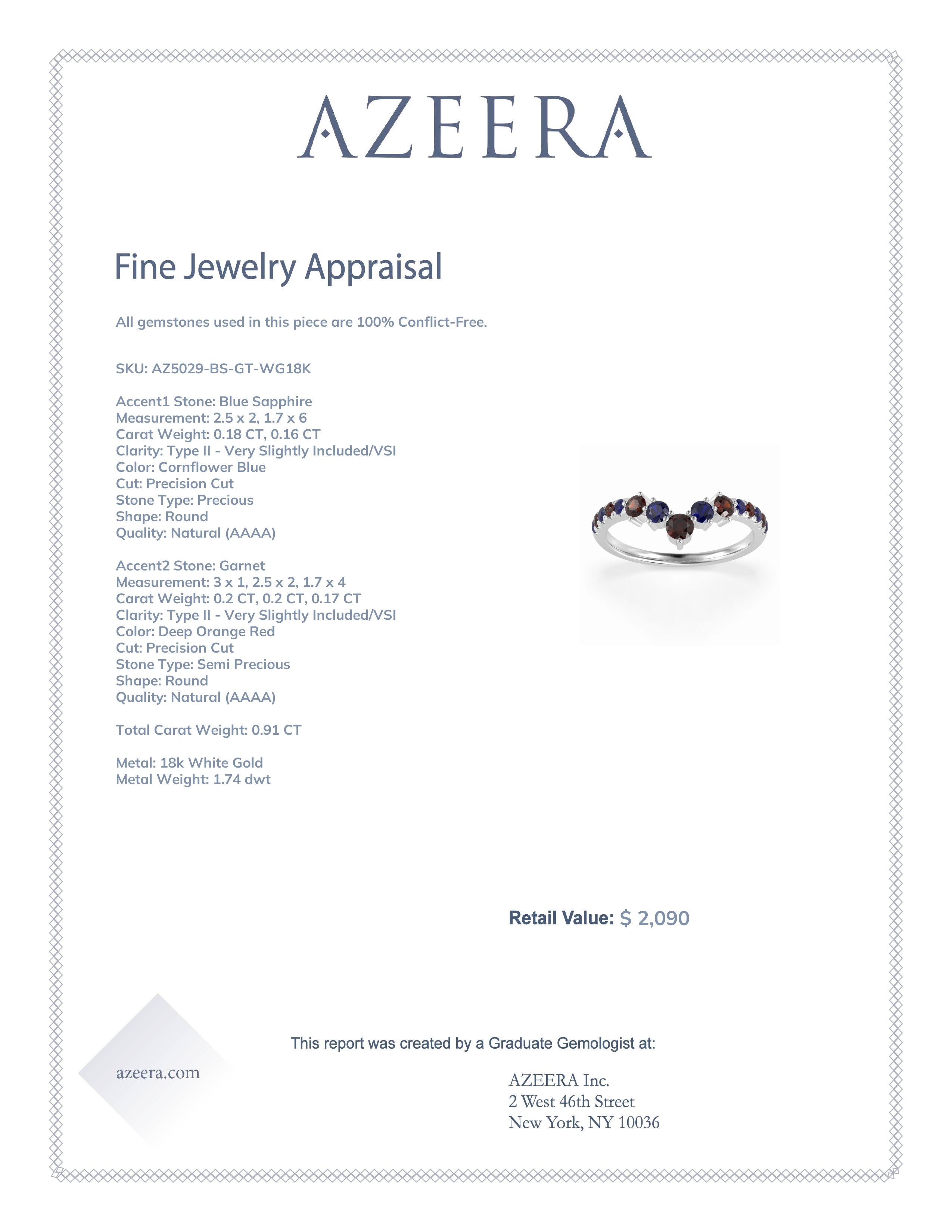 This Blue Sapphire wedding ring is casted in 18k White Gold and set with fine quality Blue Sapphire and Garnet. All of the gemstones we use are of the top 10% available, those found in fine quality boutiques across the world. This Blue Sapphire wedding band can also be added to your collection of minimalist Blue Sapphire rings. This Chevron Ring Showcases A Graceful Cascade Of Graduated Gemstones Down The Shank. Free shipping, returns, resizing, and a lifetime warranty ensure you love your purchase.