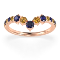 This Citrine wedding ring is casted in 18K Rose Gold and set with fine quality Citrine and Blue Sapphire. All of the gemstones we use are of the top 10% available, those found in fine quality boutiques across the world. This Citrine wedding band can also be added to your collection of minimalist Citrine rings. This Chevron Ring Showcases A Graceful Cascade Of Graduated Gemstones Down The Shank. Free shipping, returns, resizing, and a lifetime warranty ensure you love your purchase.
