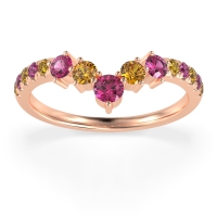 This Citrine wedding ring is casted in 18K Rose Gold and set with fine quality Citrine and Pink Tourmaline. All of the gemstones we use are of the top 10% available, those found in fine quality boutiques across the world. This Citrine wedding band can also be added to your collection of minimalist Citrine rings. This Chevron Ring Showcases A Graceful Cascade Of Graduated Gemstones Down The Shank. Free shipping, returns, resizing, and a lifetime warranty ensure you love your purchase.