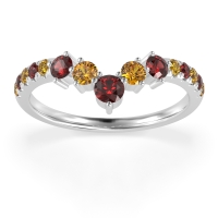 This Citrine wedding ring is casted in 14k White Gold and set with fine quality Citrine and Ruby. All of the gemstones we use are of the top 10% available, those found in fine quality boutiques across the world. This Citrine wedding band can also be added to your collection of minimalist Citrine rings. This Chevron Ring Showcases A Graceful Cascade Of Graduated Gemstones Down The Shank. Free shipping, returns, resizing, and a lifetime warranty ensure you love your purchase.