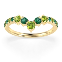 This Emerald wedding ring is casted in 14k Yellow Gold and set with fine quality Emerald and Peridot. All of the gemstones we use are of the top 10% available, those found in fine quality boutiques across the world. This Emerald wedding band can also be added to your collection of minimalist Emerald rings. This Chevron Ring Showcases A Graceful Cascade Of Graduated Gemstones Down The Shank. Free shipping, returns, resizing, and a lifetime warranty ensure you love your purchase.