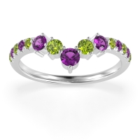 This Peridot wedding ring is casted in Palladium and set with fine quality Peridot and Amethyst. All of the gemstones we use are of the top 10% available, those found in fine quality boutiques across the world. This Peridot wedding band can also be added to your collection of minimalist Peridot rings. This Chevron Ring Showcases A Graceful Cascade Of Graduated Gemstones Down The Shank. Free shipping, returns, resizing, and a lifetime warranty ensure you love your purchase.