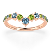 This Peridot wedding ring is casted in 14K Rose Gold and set with fine quality Peridot and Aquamarine. All of the gemstones we use are of the top 10% available, those found in fine quality boutiques across the world. This Peridot wedding band can also be added to your collection of minimalist Peridot rings. This Chevron Ring Showcases A Graceful Cascade Of Graduated Gemstones Down The Shank. Free shipping, returns, resizing, and a lifetime warranty ensure you love your purchase.