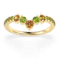 This Peridot wedding ring is casted in 18k Yellow Gold and set with fine quality Peridot and Citrine. All of the gemstones we use are of the top 10% available, those found in fine quality boutiques across the world. This Peridot wedding band can also be added to your collection of minimalist Peridot rings. This Chevron Ring Showcases A Graceful Cascade Of Graduated Gemstones Down The Shank. Free shipping, returns, resizing, and a lifetime warranty ensure you love your purchase.
