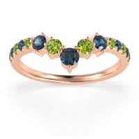 This Peridot wedding ring is casted in 14K Rose Gold and set with fine quality Peridot and London Blue Topaz. All of the gemstones we use are of the top 10% available, those found in fine quality boutiques across the world. This Peridot wedding band can also be added to your collection of minimalist Peridot rings. This Chevron Ring Showcases A Graceful Cascade Of Graduated Gemstones Down The Shank. Free shipping, returns, resizing, and a lifetime warranty ensure you love your purchase.