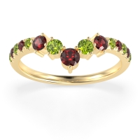 This Peridot wedding ring is casted in 18k Yellow Gold and set with fine quality Peridot and Ruby. All of the gemstones we use are of the top 10% available, those found in fine quality boutiques across the world. This Peridot wedding band can also be added to your collection of minimalist Peridot rings. This Chevron Ring Showcases A Graceful Cascade Of Graduated Gemstones Down The Shank. Free shipping, returns, resizing, and a lifetime warranty ensure you love your purchase.