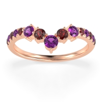 This Ruby wedding ring is casted in 14K Rose Gold and set with fine quality Ruby and Amethyst. All of the gemstones we use are of the top 10% available, those found in fine quality boutiques across the world. This Ruby wedding band can also be added to your collection of minimalist Ruby rings. This Chevron Ring Showcases A Graceful Cascade Of Graduated Gemstones Down The Shank. Free shipping, returns, resizing, and a lifetime warranty ensure you love your purchase.