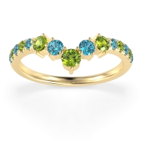 This Swiss Blue Topaz wedding ring is casted in 18k Yellow Gold and set with fine quality Swiss Blue Topaz and Peridot. All of the gemstones we use are of the top 10% available, those found in fine quality boutiques across the world. This Swiss Blue Topaz wedding band can also be added to your collection of minimalist Swiss Blue Topaz rings. This Chevron Ring Showcases A Graceful Cascade Of Graduated Gemstones Down The Shank. Free shipping, returns, resizing, and a lifetime warranty ensure you love your purchase.