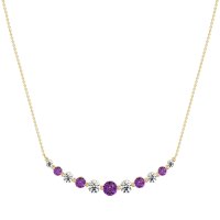 This Amethyst and Lab Diamond Necklace is casted in 14k Yellow Gold. This Women’s Classic necklace features exceptionally fine gemstones, on par with those found in the world's most exclusive boutiques and among the top 10% available globally. Elegant Graduated Pendant Necklace Featuring A Symmetrical Arrangement Of Round Stones, increasing in Size Towards The Center. A Classic And Sophisticated Statement Piece. This necklace comes with a complimentary 18-inch chain. Enjoy the confidence of our 30-day, stress-free return policy—with return shipping fully covered. Each piece is also accompanied by a Lifetime Warranty, ensuring lasting beauty and peace of mind.