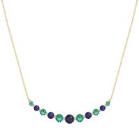 This Blue Sapphire and Emerald Necklace is casted in 14k Yellow Gold. This Women’s Classic necklace features exceptionally fine gemstones, on par with those found in the world's most exclusive boutiques and among the top 10% available globally. Elegant Graduated Pendant Necklace Featuring A Symmetrical Arrangement Of Round Stones, increasing in Size Towards The Center. A Classic And Sophisticated Statement Piece. This necklace comes with a complimentary 18-inch chain. Enjoy the confidence of our 30-day, stress-free return policy—with return shipping fully covered. Each piece is also accompanied by a Lifetime Warranty, ensuring lasting beauty and peace of mind.