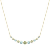 This Peridot and Swiss Blue Topaz Necklace is casted in 14k Yellow Gold. This Women’s Classic necklace features exceptionally fine gemstones, on par with those found in the world's most exclusive boutiques and among the top 10% available globally. Elegant Graduated Pendant Necklace Featuring A Symmetrical Arrangement Of Round Stones, increasing in Size Towards The Center. A Classic And Sophisticated Statement Piece. This necklace comes with a complimentary 18-inch chain. Enjoy the confidence of our 30-day, stress-free return policy—with return shipping fully covered. Each piece is also accompanied by a Lifetime Warranty, ensuring lasting beauty and peace of mind.