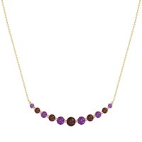 This Ruby and Amethyst Necklace is casted in 14k Yellow Gold. This Women’s Classic necklace features exceptionally fine gemstones, on par with those found in the world's most exclusive boutiques and among the top 10% available globally. Elegant Graduated Pendant Necklace Featuring A Symmetrical Arrangement Of Round Stones, increasing in Size Towards The Center. A Classic And Sophisticated Statement Piece. This necklace comes with a complimentary 18-inch chain. Enjoy the confidence of our 30-day, stress-free return policy—with return shipping fully covered. Each piece is also accompanied by a Lifetime Warranty, ensuring lasting beauty and peace of mind.