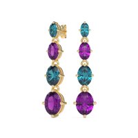 These London Blue Topaz earrings and made in 14k Yellow Gold with top quality Natural London Blue Topaz and Amethyst gemstones. These Elegant Dangle Earrings Feature A Graceful Design Of Graduating Oval Elements, Creating A Beautiful Cascading Effect. Each Oval Subtly Increases In Size, Offering Fluid Movement And A Sophisticated Silhouette That Beautifully Frames The Face. Perfect For Adding A Touch Of Understated Luxury To Any Outfit, These Earrings Are Versatile Enough For Both Daily Wear And Special Occasions. Free shipping, returns, and a lifetime warranty make luxury worry-free
