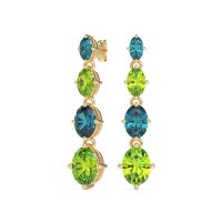 These London Blue Topaz earrings and made in 14k Yellow Gold with top quality Natural London Blue Topaz and Peridot gemstones. These Elegant Dangle Earrings Feature A Graceful Design Of Graduating Oval Elements, Creating A Beautiful Cascading Effect. Each Oval Subtly Increases In Size, Offering Fluid Movement And A Sophisticated Silhouette That Beautifully Frames The Face. Perfect For Adding A Touch Of Understated Luxury To Any Outfit, These Earrings Are Versatile Enough For Both Daily Wear And Special Occasions. Free shipping, returns, and a lifetime warranty make luxury worry-free