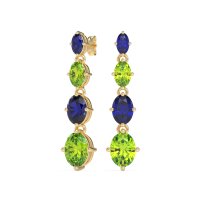 These Lab Blue Sapphire earrings and made in 14k Yellow Gold with top quality Lab Blue Sapphire and Peridot gemstones. These Elegant Dangle Earrings Feature A Graceful Design Of Graduating Oval Elements, Creating A Beautiful Cascading Effect. Each Oval Subtly Increases In Size, Offering Fluid Movement And A Sophisticated Silhouette That Beautifully Frames The Face. Perfect For Adding A Touch Of Understated Luxury To Any Outfit, These Earrings Are Versatile Enough For Both Daily Wear And Special Occasions. Free shipping, returns, and a lifetime warranty make luxury worry-free