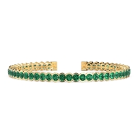 These 14k Yellow Gold bracelets feature fine quality Emerald gemstones. This Half Bezel Set Bangle, Crafted with invisible Strength, Glides Effortlessly Onto Your Wrist, Ready To Become Your Everyday Companion. Embrace A Piece That Effortlessly Adapts To Your Every Move, Sparkling with Captivating Beauty And Unwavering Resilience. Free shipping, returns, and a lifetime warranty make luxury worry-free