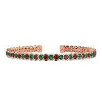 These 14K Rose Gold bracelets feature fine quality Emerald gemstones. This Half Bezel Set Bangle, Crafted with invisible Strength, Glides Effortlessly Onto Your Wrist, Ready To Become Your Everyday Companion. Embrace A Piece That Effortlessly Adapts To Your Every Move, Sparkling with Captivating Beauty And Unwavering Resilience. Free shipping, returns, and a lifetime warranty make luxury worry-free