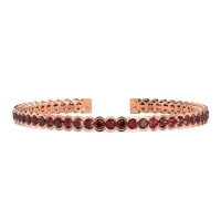 These 14K Rose Gold bracelets feature fine quality Ruby gemstones. This Half Bezel Set Bangle, Crafted with invisible Strength, Glides Effortlessly Onto Your Wrist, Ready To Become Your Everyday Companion. Embrace A Piece That Effortlessly Adapts To Your Every Move, Sparkling with Captivating Beauty And Unwavering Resilience. Free shipping, returns, and a lifetime warranty make luxury worry-free