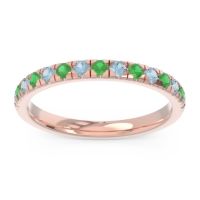 This Aquamarine wedding ring is casted in 14K Rose Gold and set with fine quality Aquamarine and Emerald. All of the gemstones we use are of the top 10% available, those found in fine quality boutiques across the world. This Aquamarine wedding band can also be added to your collection of minimalist Aquamarine rings. This Ring Features Round Brilliant Gems in A Scalloped Prong Setting Half Way Around The Shank. Free shipping, returns, resizing, and a lifetime warranty ensure you love your purchase.
