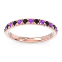 This Black Onyx wedding ring is casted in 14K Rose Gold and set with fine quality Black Onyx and Amethyst. All of the gemstones we use are of the top 10% available, those found in fine quality boutiques across the world. This Black Onyx wedding band can also be added to your collection of minimalist Black Onyx rings. This Ring Features Round Brilliant Gems in A Scalloped Prong Setting Half Way Around The Shank. Free shipping, returns, resizing, and a lifetime warranty ensure you love your purchase.