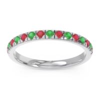 This Ruby wedding ring is casted in 14k White Gold and set with fine quality Ruby and Emerald. All of the gemstones we use are of the top 10% available, those found in fine quality boutiques across the world. This Ruby wedding band can also be added to your collection of minimalist Ruby rings. This Ring Features Round Brilliant Gems in A Scalloped Prong Setting Half Way Around The Shank. Free shipping, returns, resizing, and a lifetime warranty ensure you love your purchase.