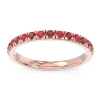 This Ruby wedding ring is casted in 18K Rose Gold and set with fine quality Ruby and Garnet. All of the gemstones we use are of the top 10% available, those found in fine quality boutiques across the world. This Ruby wedding band can also be added to your collection of minimalist Ruby rings. This Ring Features Round Brilliant Gems in A Scalloped Prong Setting Half Way Around The Shank. Free shipping, returns, resizing, and a lifetime warranty ensure you love your purchase.