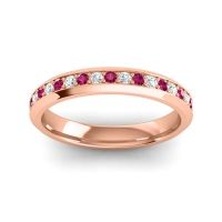 This Lab Diamond wedding ring is casted in 14K Rose Gold and set with fine quality Lab Diamond and Ruby. All of the gemstones we use are of the top 10% available, those found in fine quality boutiques across the world. This Lab Diamond wedding band can also be added to your collection of minimalist Lab Diamond rings. This Minimalist Band Is Perfect For Adding A Touch Of Color To Your Outfit. Your Round Colored Stones Sit in A Shared 4 Prong Setting Going Half Way Around The Band Providing You with Only The Essential Amount Of Gems. Free shipping, returns, resizing, and a lifetime warranty ensure you love your purchase.