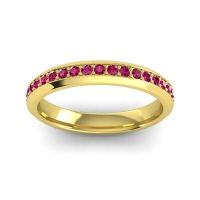 This Ruby wedding ring is set with AAAA Ruby, amongst the top 10% of material available. This ring can be casted in your choice of 9 metals. Ruby rings can be worn as gemstone wedding rings, or can even be stacked with your other gemstone rings. This Minimalist Band Is Perfect For Adding A Touch Of Color To Your Outfit. Your Round Colored Stones Sit in A Shared 4 Prong Setting Going Half Way Around The Band Providing You with Only The Essential Amount Of Gems. Choose from a variety of gems and metals to make truly unique custom rings! Free shipping, returns, resizing, and a lifetime warranty make choosing this product easy.