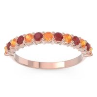 This Citrine wedding ring is casted in 14K Rose Gold and set with fine quality Citrine and Ruby. All of the gemstones we use are of the top 10% available, those found in fine quality boutiques across the world. This Citrine wedding band can also be added to your collection of minimalist Citrine rings. This Band Features Small Round Brilliants Gems Set in A Half Eternity Ring Around The Shank. Free shipping, returns, resizing, and a lifetime warranty ensure you love your purchase.