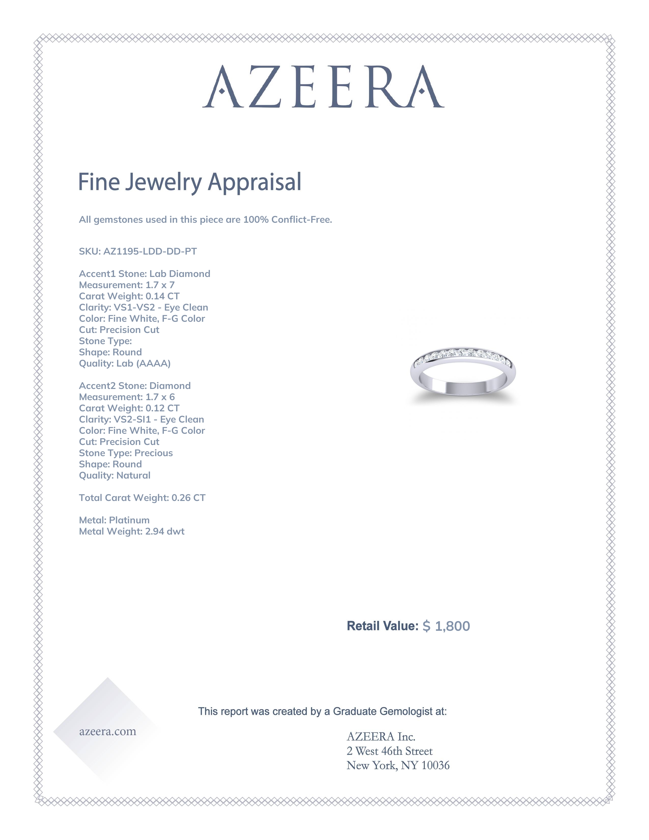 This Lab Diamond wedding ring is casted in Platinum and set with fine quality Lab Diamond and Diamond. All of the gemstones we use are of the top 10% available, those found in fine quality boutiques across the world. This Lab Diamond wedding band can also be added to your collection of minimalist Lab Diamond rings. This Sleek Design Is The Perfect Alternative To Prong Set Bands. A Row Of Gems Is Secure Placed Between The Channel Setting And Is Complimented By The Rounded Band. Free shipping, returns, resizing, and a lifetime warranty ensure you love your purchase.