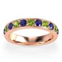 This Blue Sapphire wedding ring is casted in 18K Rose Gold and set with fine quality Blue Sapphire and Peridot. All of the gemstones we use are of the top 10% available, those found in fine quality boutiques across the world. This Blue Sapphire wedding band can also be added to your collection of minimalist Blue Sapphire rings. This Classic Wedding Band Consists Of A Channel Set Appearance, with The Traditional Prong Set Stones, Giving Added Security To The Gemstones. Free shipping, returns, resizing, and a lifetime warranty ensure you love your purchase.