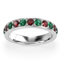 This Emerald wedding ring is casted in 18k White Gold and set with fine quality Emerald and Ruby. All of the gemstones we use are of the top 10% available, those found in fine quality boutiques across the world. This Emerald wedding band can also be added to your collection of minimalist Emerald rings. This Classic Wedding Band Consists Of A Channel Set Appearance, with The Traditional Prong Set Stones, Giving Added Security To The Gemstones. Free shipping, returns, resizing, and a lifetime warranty ensure you love your purchase.