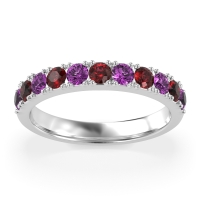 This Amethyst wedding ring is casted in Palladium and set with fine quality Amethyst and Ruby. All of the gemstones we use are of the top 10% available, those found in fine quality boutiques across the world. This Amethyst wedding band can also be added to your collection of minimalist Amethyst rings. Featuring A Continuous Row Of Diamonds Set in Secure Prongs, This Ring Is Perfect For Stacking Or As A Standalone Piece. Free shipping, returns, resizing, and a lifetime warranty ensure you love your purchase.