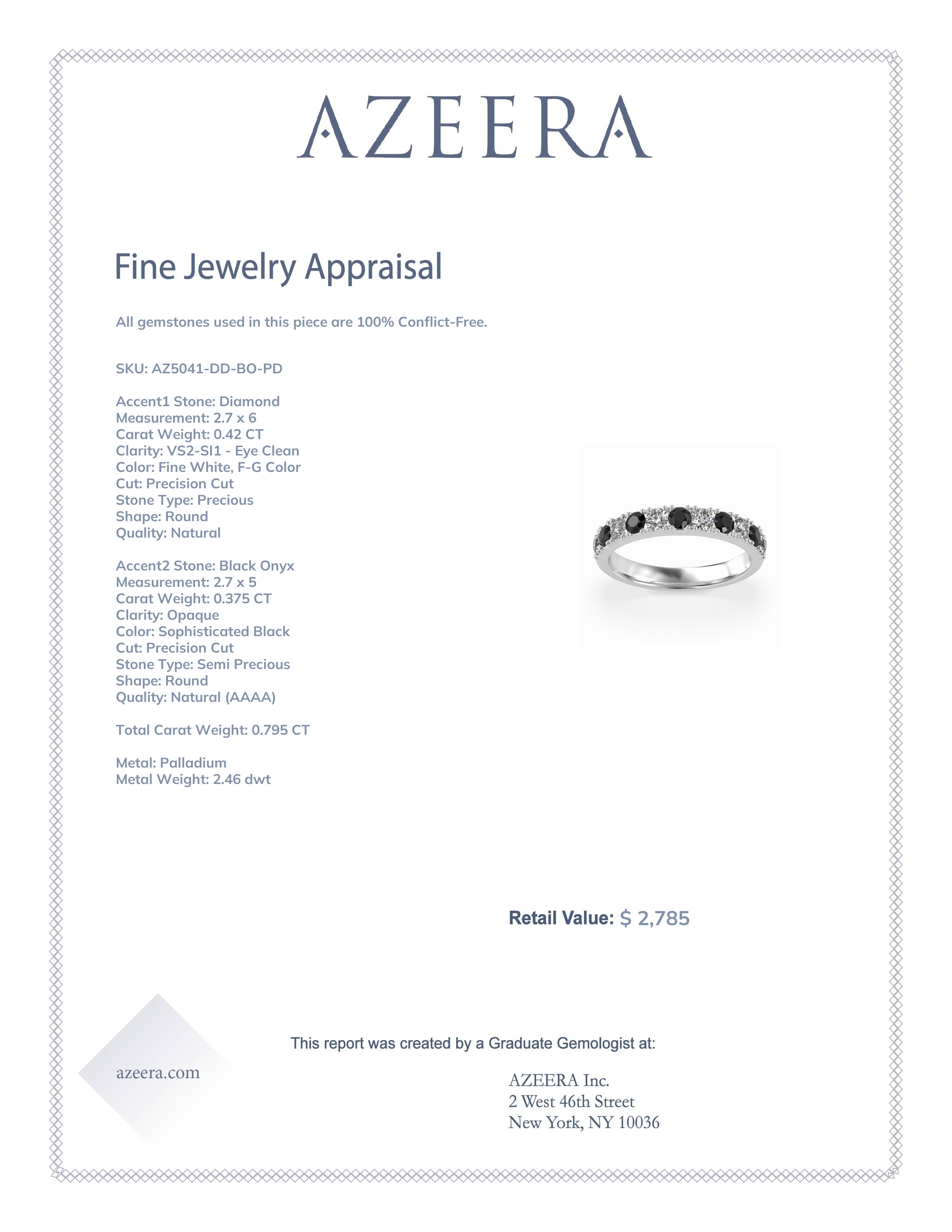This Diamond wedding ring is casted in Palladium and set with fine quality Diamond and Black Onyx. All of the gemstones we use are of the top 10% available, those found in fine quality boutiques across the world. This Diamond wedding band can also be added to your collection of minimalist Diamond rings. Featuring A Continuous Row Of Diamonds Set in Secure Prongs, This Ring Is Perfect For Stacking Or As A Standalone Piece. Free shipping, returns, resizing, and a lifetime warranty ensure you love your purchase.