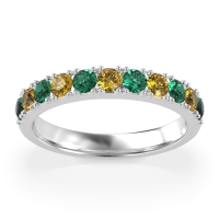 This Emerald wedding ring is casted in Platinum and set with fine quality Emerald and Citrine. All of the gemstones we use are of the top 10% available, those found in fine quality boutiques across the world. This Emerald wedding band can also be added to your collection of minimalist Emerald rings. Featuring A Continuous Row Of Diamonds Set in Secure Prongs, This Ring Is Perfect For Stacking Or As A Standalone Piece. Free shipping, returns, resizing, and a lifetime warranty ensure you love your purchase.