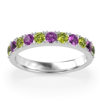 This Peridot wedding ring is casted in Palladium and set with fine quality Peridot and Amethyst. All of the gemstones we use are of the top 10% available, those found in fine quality boutiques across the world. This Peridot wedding band can also be added to your collection of minimalist Peridot rings. Featuring A Continuous Row Of Diamonds Set in Secure Prongs, This Ring Is Perfect For Stacking Or As A Standalone Piece. Free shipping, returns, resizing, and a lifetime warranty ensure you love your purchase.