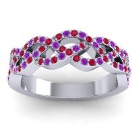 This Ruby wedding ring is casted in 14k White Gold and set with fine quality Ruby and Amethyst. All of the gemstones we use are of the top 10% available, those found in fine quality boutiques across the world. This Ruby wedding band can also be added to your collection of minimalist Ruby rings. This Half Eternity Band Is Stylish And Versatile. Your Round Brilliant Gems Sit A Pave Setting Woven Around Each Other Over The Upper Half Of The Band. Free shipping, returns, resizing, and a lifetime warranty ensure you love your purchase.