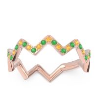 This Citrine and Emerald ring is the perfect addition to you wardrobe. Not only do we use the top 10% of gemstones available, we also make everything right here in New York City. Our Fashion Rings can be added to your collection of dainty rings, or even to your collection of stacking rings. This Ring Features Small Round Brilliants in A Shared Prong Setting Half Way Around A Wavy Shank. Ditch the worry, embrace the shine with free shipping, returns, resizing and a lifetime warranty.
