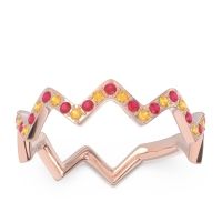 This Ruby and Citrine ring is the perfect addition to you wardrobe. Not only do we use the top 10% of gemstones available, we also make everything right here in New York City. Our Fashion Rings can be added to your collection of dainty rings, or even to your collection of stacking rings. This Ring Features Small Round Brilliants in A Shared Prong Setting Half Way Around A Wavy Shank. Ditch the worry, embrace the shine with free shipping, returns, resizing and a lifetime warranty.