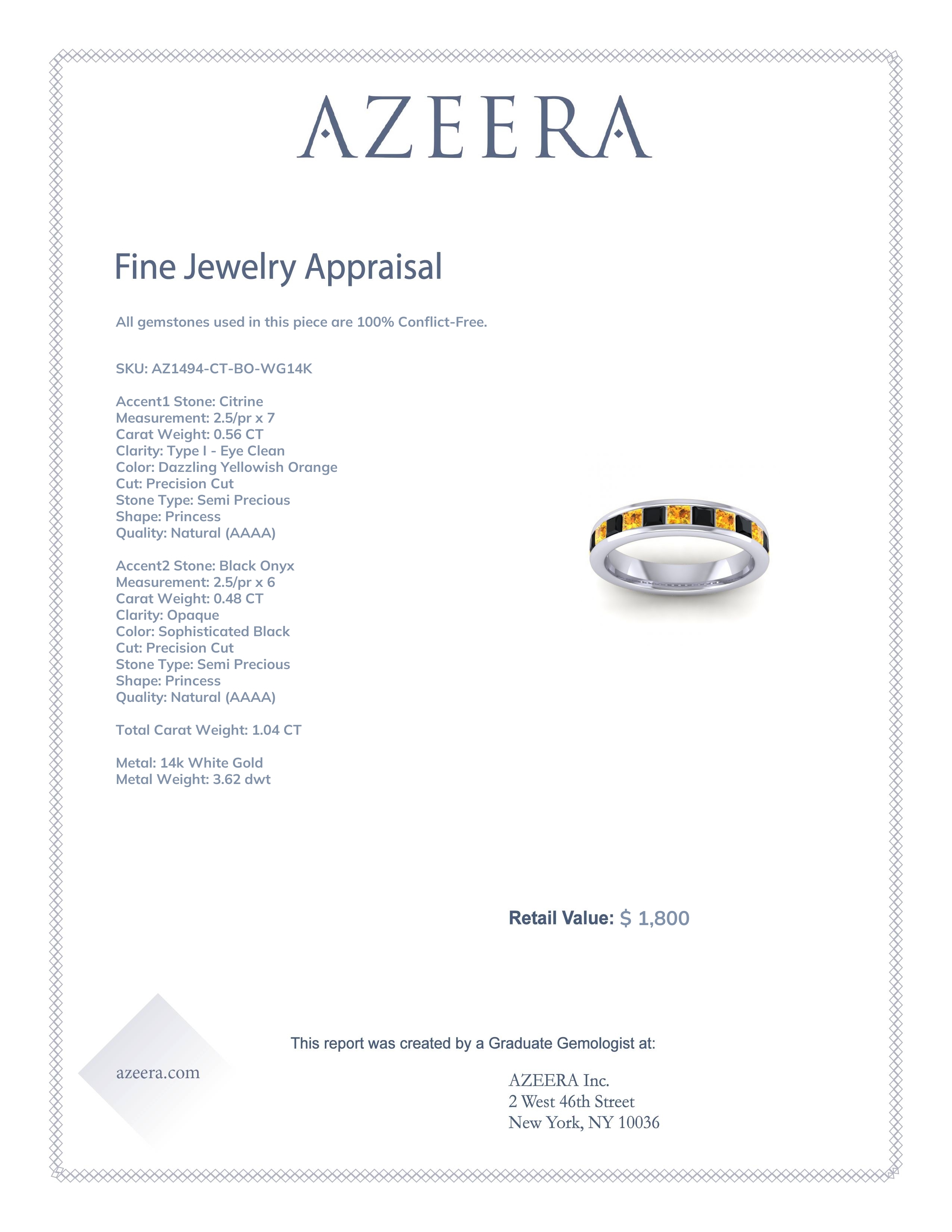 This Citrine wedding ring is casted in 14k White Gold and set with fine quality Citrine and Black Onyx. All of the gemstones we use are of the top 10% available, those found in fine quality boutiques across the world. This Citrine wedding band can also be added to your collection of minimalist Citrine rings. This Timeless Design in An Essential in Any Jewelry Collection. Your Square Princess Cut Colored Stones Are Channel Set Across Half The Band Between Two Wide Walls Giving The Band The Appearance Of Three Stackable Rings in One. Free shipping, returns, resizing, and a lifetime warranty ensure you love your purchase.