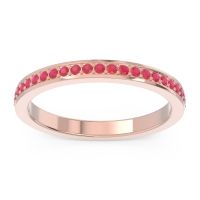 This Ruby wedding ring is set with AAAA Ruby, amongst the top 10% of material available. This ring can be casted in your choice of 9 metals. Ruby rings can be worn as gemstone wedding rings, or can even be stacked with your other gemstone rings. This Ring Features Round Brilliant Gems Prong Set Between Two Secure Walls Half Way Around The Shank. Customize And Build Your Own Gemstone Ring By Selecting The Gems And Metals Of Your Choice. Choose from a variety of gems and metals to make truly unique custom rings! Free shipping, returns, resizing, and a lifetime warranty make choosing this product easy.