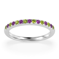 This Amethyst wedding ring is casted in Platinum and set with fine quality Amethyst and Peridot. All of the gemstones we use are of the top 10% available, those found in fine quality boutiques across the world. This Amethyst wedding band can also be added to your collection of minimalist Amethyst rings. This Classic Half-eternity Wedding Band Features Stones Extending Halfway Down The Shank. Free shipping, returns, resizing, and a lifetime warranty ensure you love your purchase.