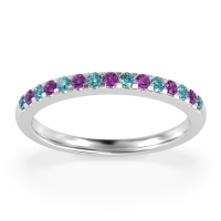 This Amethyst wedding ring is casted in Platinum and set with fine quality Amethyst and Swiss Blue Topaz. All of the gemstones we use are of the top 10% available, those found in fine quality boutiques across the world. This Amethyst wedding band can also be added to your collection of minimalist Amethyst rings. This Classic Half-eternity Wedding Band Features Stones Extending Halfway Down The Shank. Free shipping, returns, resizing, and a lifetime warranty ensure you love your purchase.
